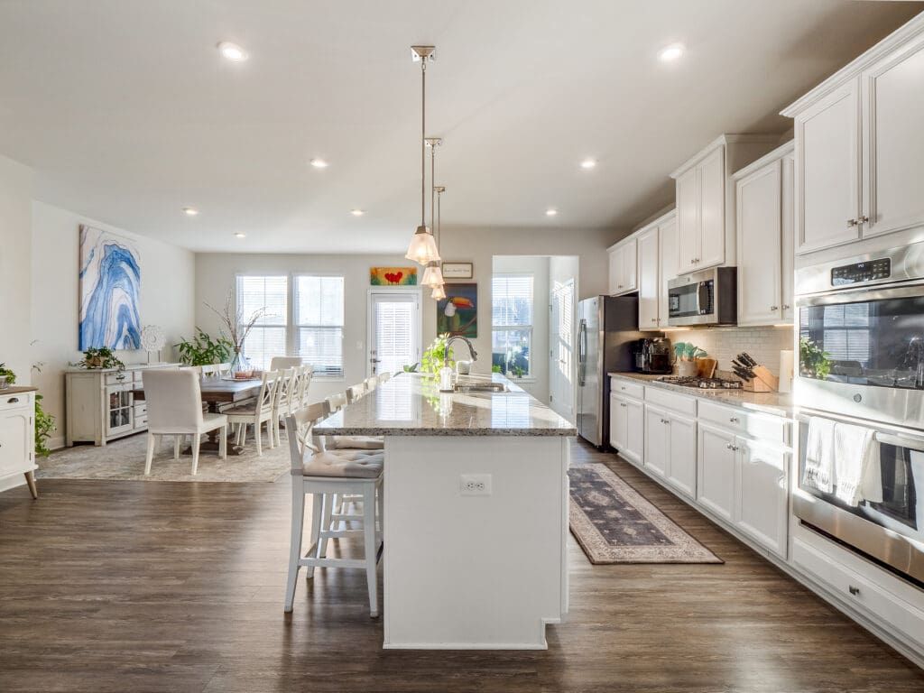 Beautiful 3-level end-line townhome – 3 bedrooms / 2 full bathrooms / 1 half bathroom – Only 3 Yrs old. Lovely open floorplan with beautiful luxury vinyl plank flooring throughout. Large Windows. Spacious living room. Stunning kitchen with white cabinets, very large island with plenty of seating, pendant lighting, stainless steel appliances, stylish backsplash, granite countertops, pantry, and separate dining area. Off the Kitchen is an oversized deck built with low-maintenance TREX materials. The primary suite boasts a large walk-in closet and an en-suite bathroom with a large double vanity and dual showerhead shower. On the upper level, there are two additional spacious bedrooms and a shared bathroom. The laundry room has a newer washer and dryer. Finished lower-level recreation room with full-sized windows offers plenty of light and extra space for entertaining. The oversized 2-car rear-load garage has lots of extra storage space! BLACKBURN is a newer neighborhood in a fantastic location! Close to shopping, restaurants, and movie theater and has easy access to major commuter routes – Rt 66, Prince William County Parkway, and Public Transit. Find out RIGHT NOW how you may qualify for UP TO 2% below market interest rates!