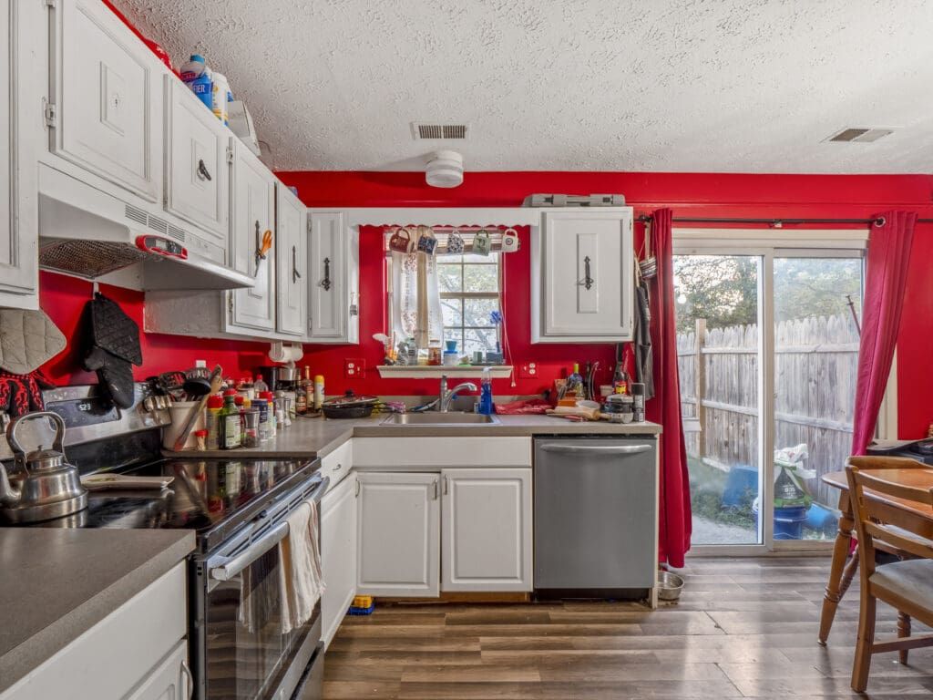 You continue walking through the main level past the stairs and half bathroom into the kitchen. Arguably, the most important feature of a house. The kitchen has stainless steel appliances and enough counter space to accommodate your prized appliance (the air fryer). You turn around and notice there is enough room for your dining table and sliding doors leading out to a fully fenced backyard. “This checks off my main boxes.” You tell your agent.