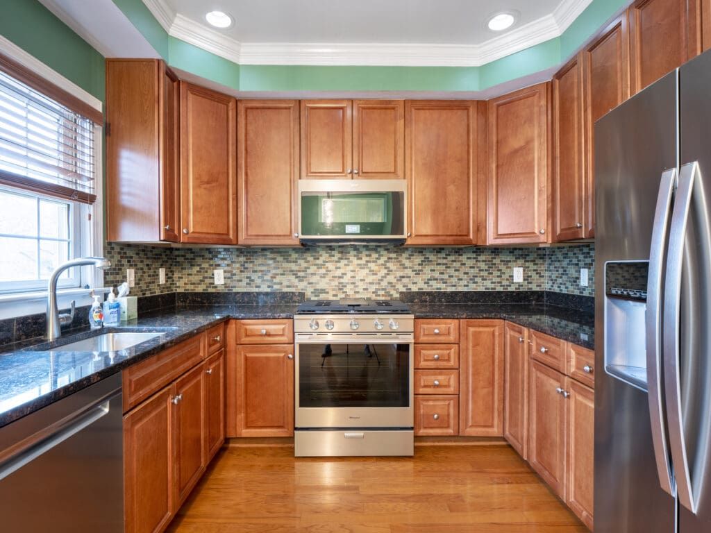 Enter into an open floor plan offering gleaming hardwood floors in the dual living and dining room and a gourmet kitchen that has been fully-equipped with a cozy dining area, gorgeous granite countertops, all new professional stainless steel appliances with wifi capabilities, gas cooking, a stylish backsplash, and endless cabinet space.