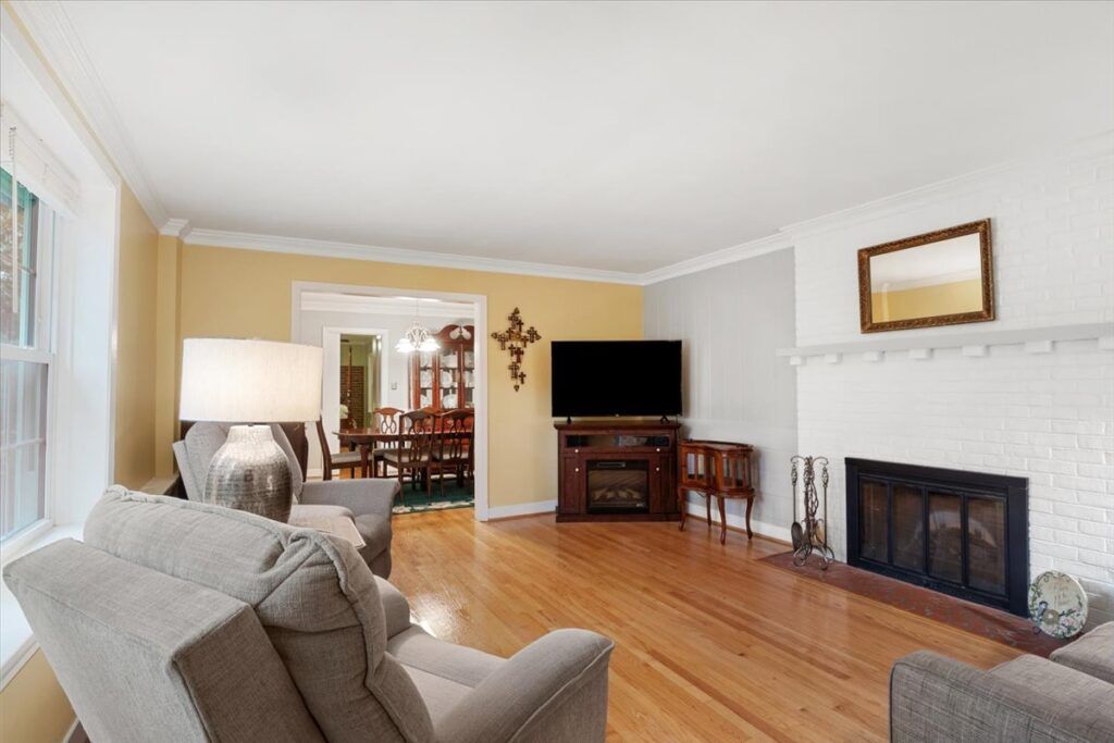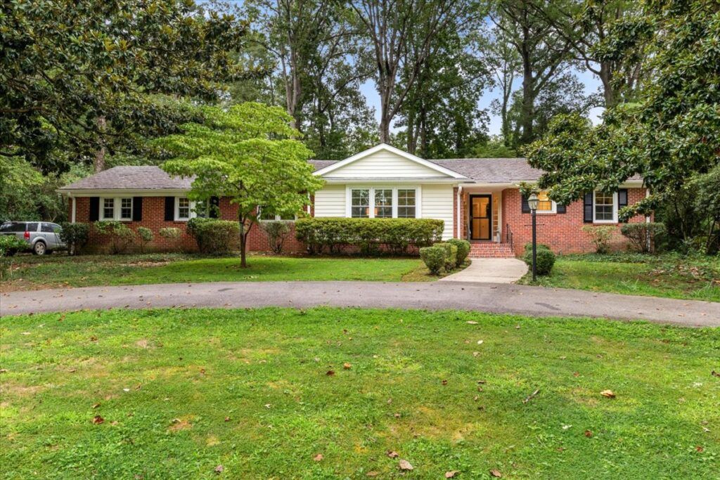Stratford Hills brick beauty—minutes to the James River and just 15 minutes to the heart of Richmond. Timeless curb appeal meets easy living in this classic ranch set on over a half-acre backing to trees. Inside, rich hardwoods run throughout sun-splashed living spaces, while the updated kitchen shines with granite countertops, a brick backsplash, and stylish tile flooring. The flow is effortless: a formal dining room with crown molding for special occasions, a cozy den with a handsome brick accent wall that opens to a bright sunroom, and an airy living room perfect for relaxed gatherings. Outdoor living feels private and serene thanks to the deep, wooded lot, and everyday convenience gets a boost from the circular driveway and no HOA. Peace-of-mind updates include a 2019 HVAC system and a 2018 water heater, so you can move right in and enjoy. The location delivers the best of Richmond living—easy access to kayaking, tubing, and trails along the James; quick trips to museums, shopping, and dining downtown; approximately 8 minutes to the Country Club of Virginia, around 5 minutes to the University of Richmond, and close to VA and Chippenham Hospitals. A rare chance to own a move-in-ready home in Stratford Hills—come see how beautifully it lives. Schedule your private tour today. (Some photos have been virtually staged.)