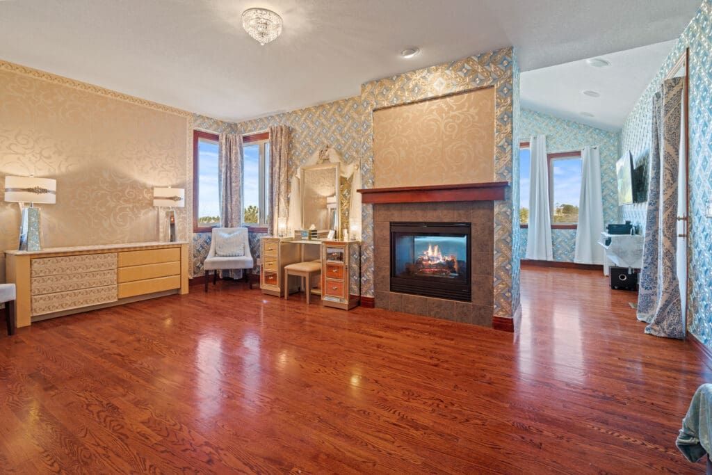 Stunning dream home located on 5+ acres in the tranquil Sky Rim subdivision of Parker! The large open area from kitchen to family room. Full wet bar and lounge area between the kitchen and family room with ice maker, wine refrigerator, overhead wine rack, and dishwasher. Dining room French doors open to covered outside seating areas with large flagstone front courtyard. Bedroom, bar, and breakfast nook open to a covered deck with a gas fireplace overlooking a wildlife preserve. Finished basement with 22 seat circular bar with illuminated top, caterer’s kitchen, home theatre, and 2 Bedrooms. Opens with two NanaWalls to fully expose 3000 sqft quartz concrete coated patio with heated non-chlorine/non-salt pool and spa overlooking wild grass area to the wildlife preserve. A MUST-SEE!