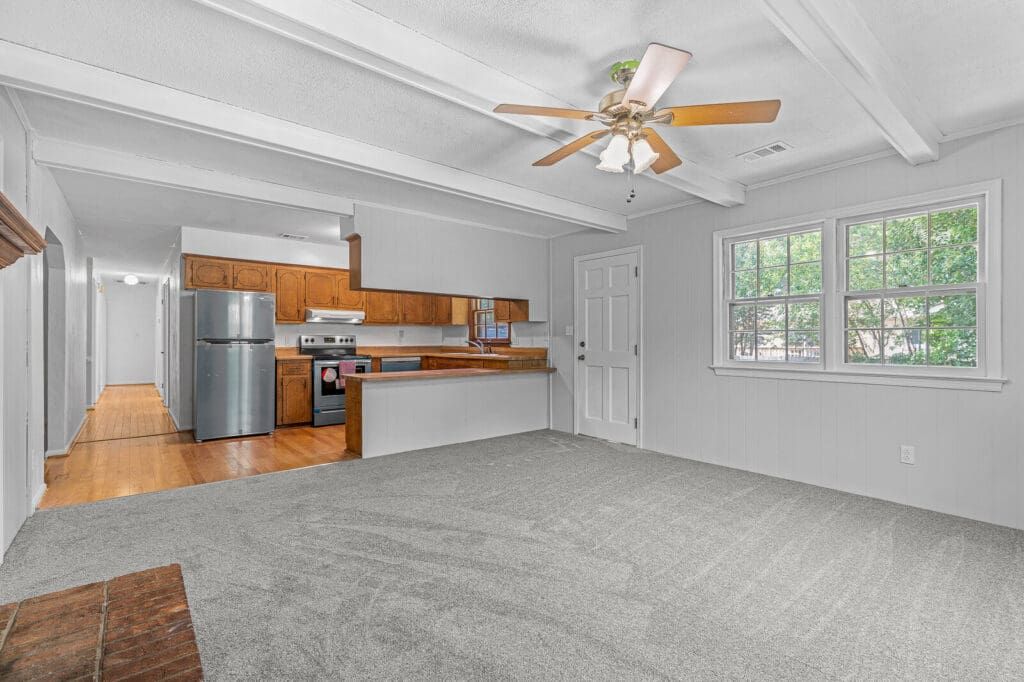 Beautifully cared for 3 bedroom and 2 full bathroom Brick Ranch on a developed and quiet dead-end street. Open concept living featuring a kitchen that opens up to the living room. Light and bright! The sellers have taken care of most of the big-ticket items for YOU! New roof, new carpet, new appliances, new garbage disposal, and a fresh coat of paint throughout! Newer AC, and updated plumbing and electrical. Conveniently located near shopping and interstate access. Wow! Come and see!