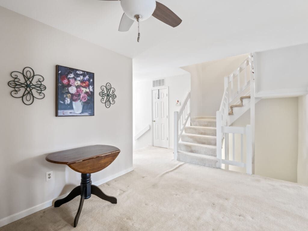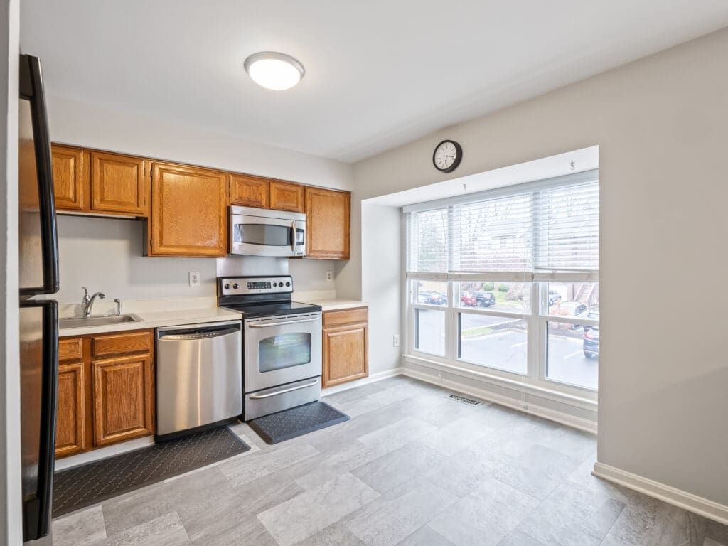 Three-Story Brick Townhome with one-car garage in a quiet community. Spacious first-floor family room, separate dining room, and eat-in kitchen with oversized windows. Large deck off the family room overlooking woods. Covered patio with privacy fence of a finished basement, ideal for entertaining. The Master bedroom features twin closets and a master bathroom. Powder room on the main level and in finished basement. Reserved and guest parking are easily accessible.
