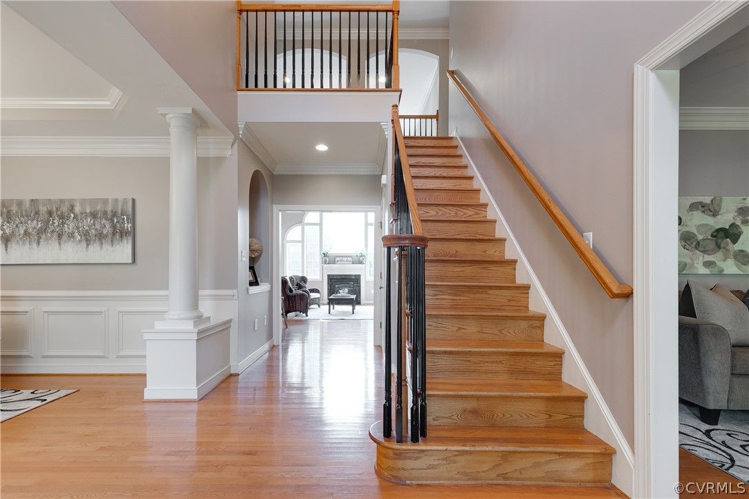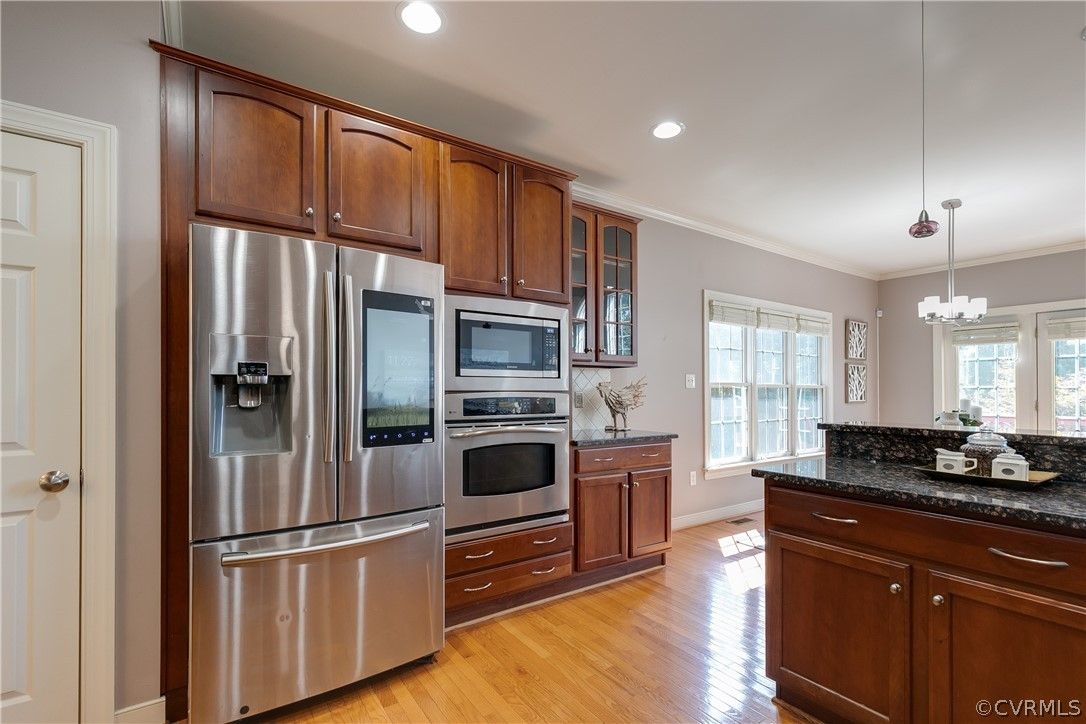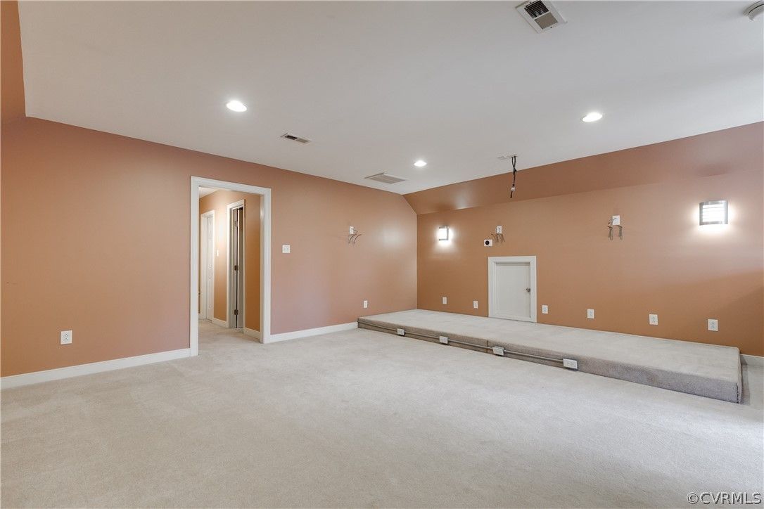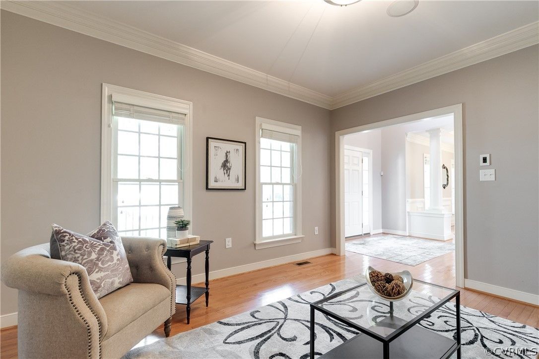 Light filled brick front luxury home in Blairmont at Grey Oak! The two story foyer opens up to the formal sitting & dining room. dining room feats. Tray ceiling, chandelier, & wainscoting, connecting to the kitchen. Kitchen boasts granite countertops, stainless appliances, gas cooktop & breakfast bar. Casual dining area & kitchen open up to family room w/ two story cathedral ceiling, gas fireplace & lots of natural light. 1st floor also feats primary bedroom suite w/ sitting area, dual walk-in closets, dressing area, & luxury bath that includes double vanity, jacuzzi tub, & standing tile shower. A study w/ glass doors, laundry room, and powder room complete the first floor. 2nd floor features a loft, 3 additional spacious bedrooms, 2 bathrooms, & an over sized recreation room. Third floor features a custom built media room w/ surround sound wiring, wet bar, an additional cozy room/den, and a full bath. The home is situated on a large lot with a 3-car garage that includes a Tesla charger. Updates include fresh paint, new carpet, upstairs HVAC 2021, & water heater 2022. Community has walking trails, club house, pool, tennis courts, & just mins away from Short Pump & main interstates!