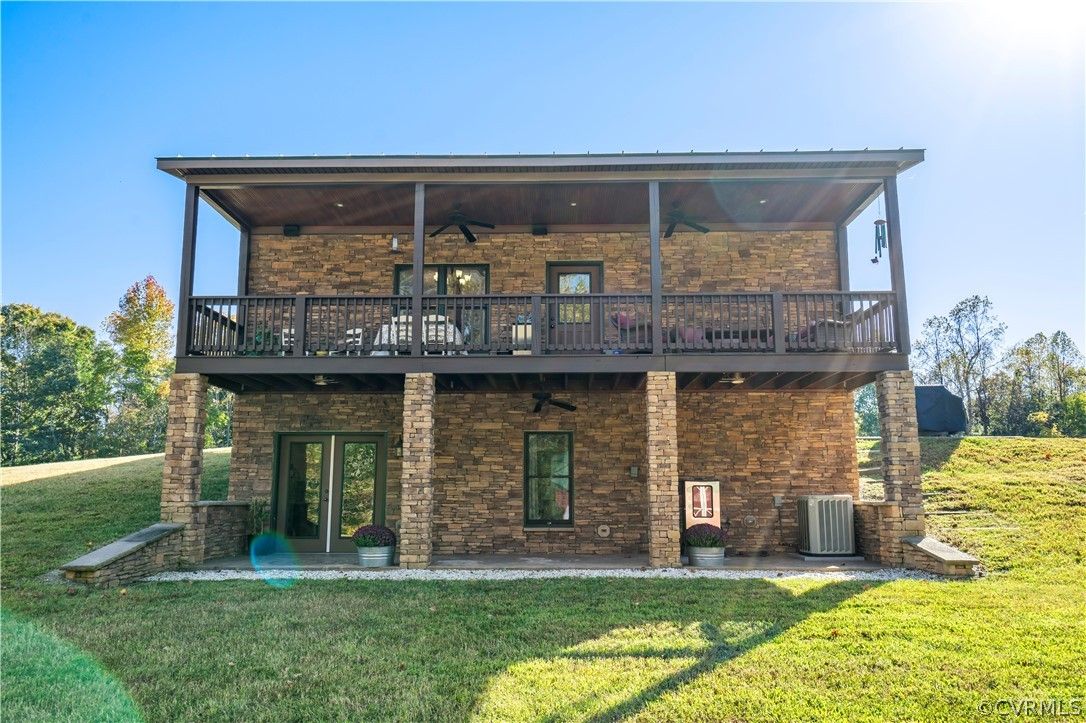 Your own very private oasis is awaiting your arrival. Lovely custom stacked stone house w full-sized front country porch w Wyoming timbers & porch swing to relax & enjoy scenery. Full-size covered back porch off dining area too. Full standing seam metal roof! Custom-built to last! Every detail upgraded. Custom cabinetry & granite countertops. Solid hardwood floors! 2 stone gas fireplaces! Primary ensuite w walk-in closets. Walkout basement w porch/patio! So much quality outdoor space! Large shed workshop w electric 30 amp sub panel. HVAC in kennel space. Owners added 40x40 metal barn w 200 amp electrical service. Water is run to barn & two fenced pastures. Both fenced pastures have 200 amp electric service! Rolling hill 120-acre property has spring-fed creek & 25-year-old hardwoods! 5 miles of ATV/walking/horse trails on property. Additional pasture site that could be another home site. Amazing private oasis is a perfect sanctuary. The land's been carefully stewarded for many years for hunting deer, quail & turkey. So much potential, yet you can move in & enjoy this paradise as it is currently. Find out RIGHT NOW how you may qualify for UP TO 2% below-market interest rates.